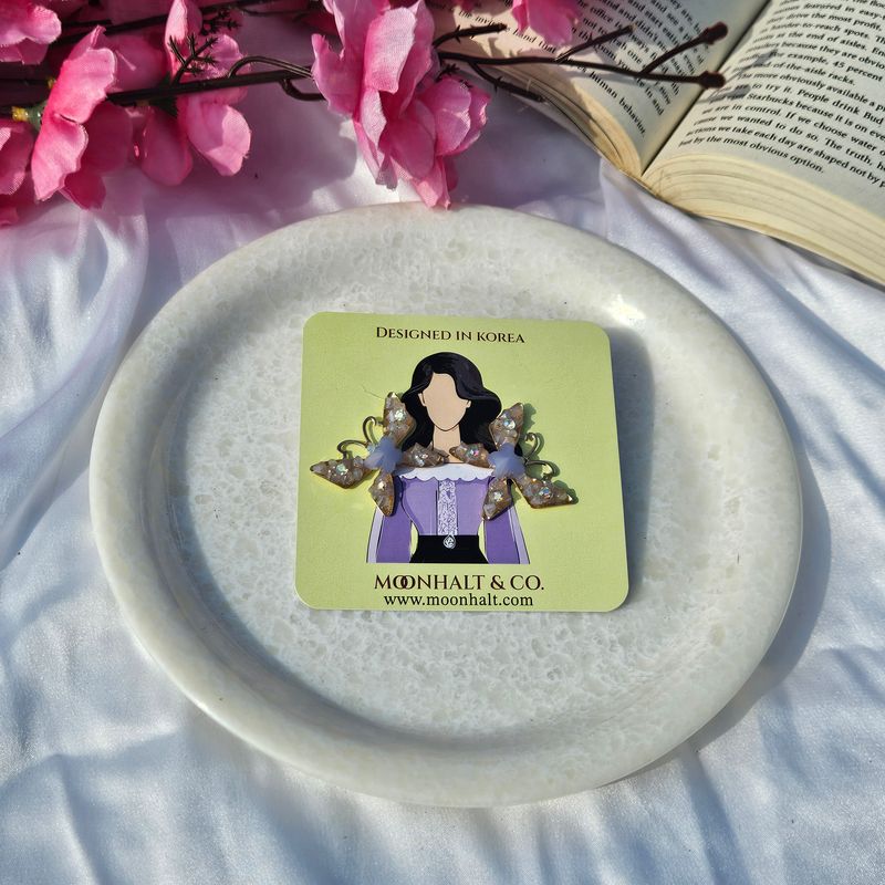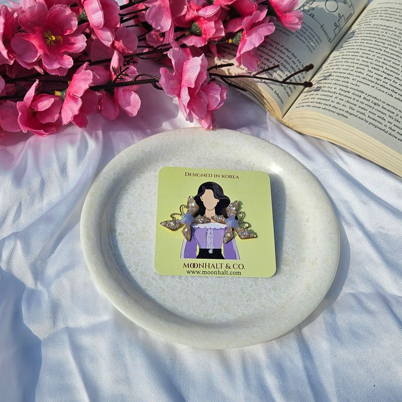 The Opal Butterfly Dream Earrings by Moonhalt & Co. capture the enchantment of a butterfly’s delicate flight. Designed with opalescent stones that shimmer in the light, these earrings feature soft lavender accents that highlight their ethereal beauty. The intricate butterfly design is complemented by golden detailing, adding a warm, luxurious touch. These lightweight earrings offer both grace and versatility, perfect for elevating your look on special occasions or adding a whimsical flair to everyday attire.